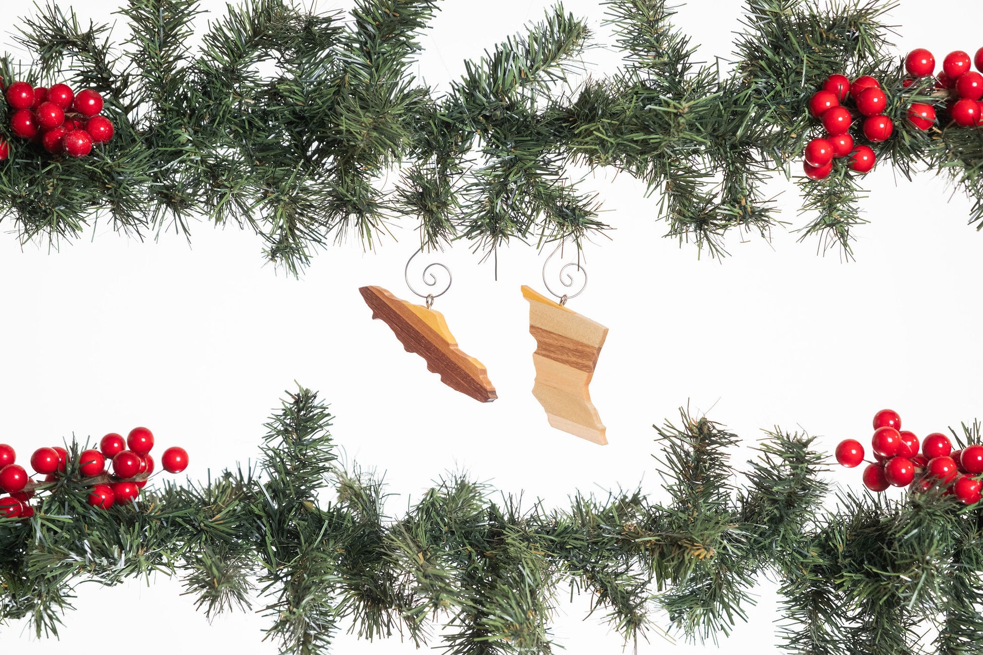 Each Ornament is made using a variety of wood species - with every ornament being truly one of a kind. Each ornament is cut out and then shaped and sanded by hand. Crafted with care and skill, our ornaments are adorned with nickel-plated hooks and eyelets, ensuring durability and a touch of elegance (hooks included).