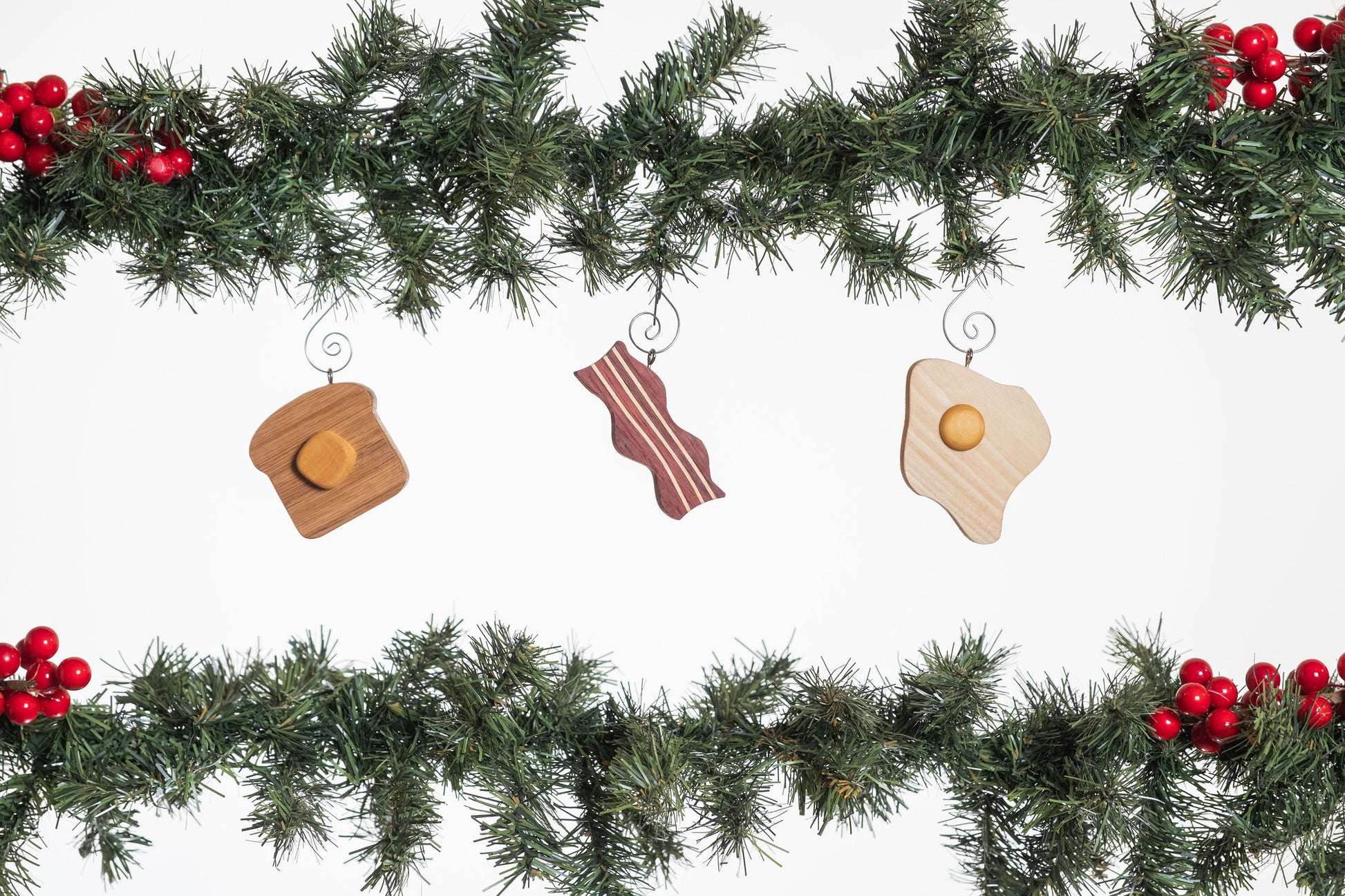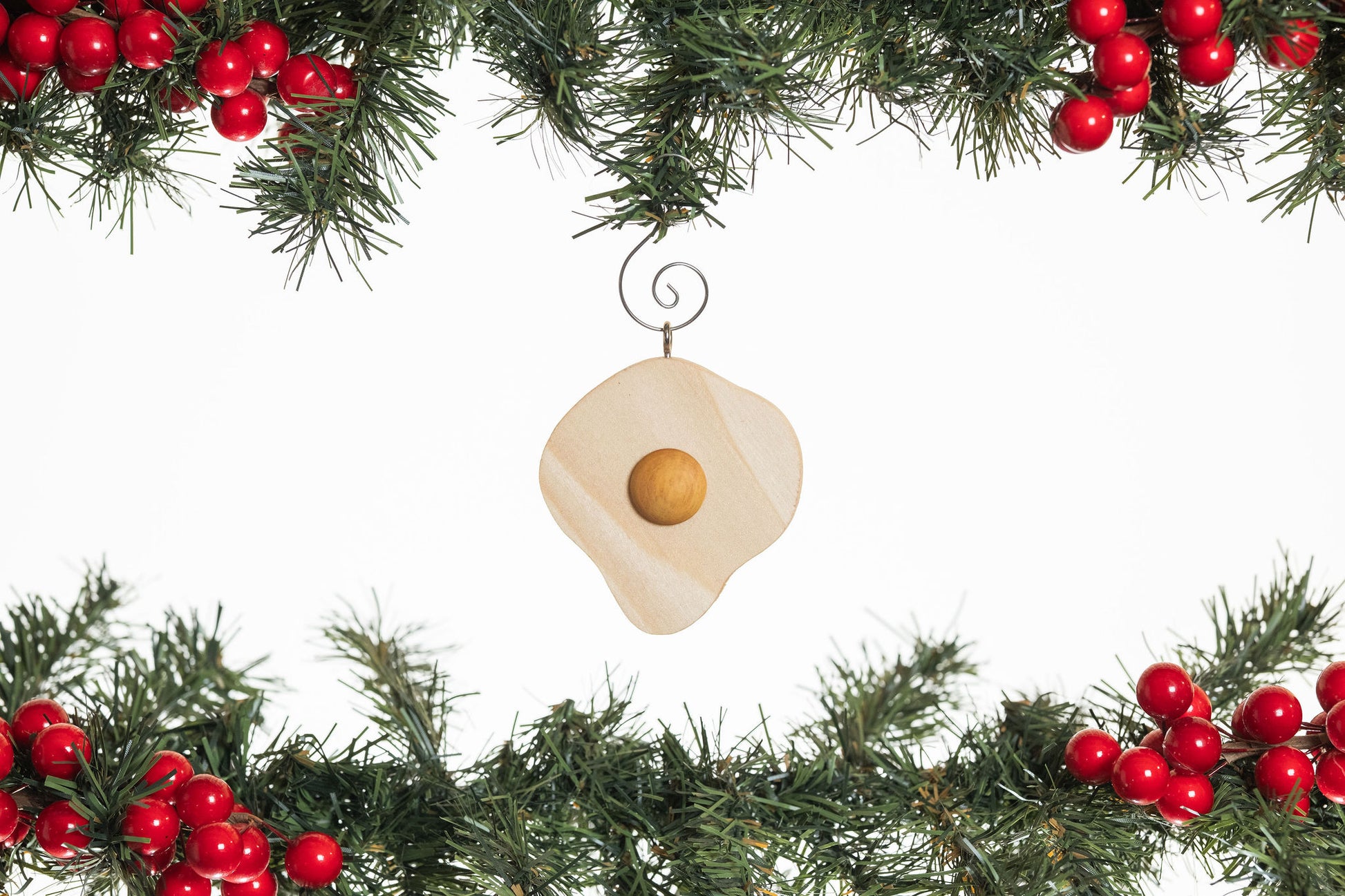 These ornaments are made with Maple or Poplar for the egg whites that are cut out and then shapen and sanded by hand.The yolks are hand turned Yellowheart that are subsetted into each egg white! Crafted with care and skill, our ornaments are adorned with nickel-plated hooks and eyelets, ensuring durability and a touch of elegance (hooks included).